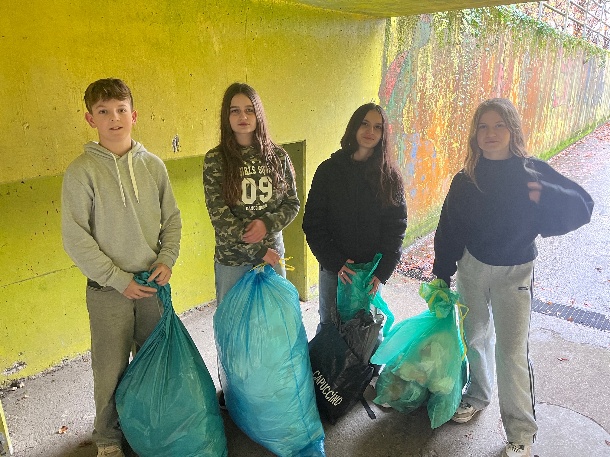 Ein weiterer Schwerpunkt war die Umweltaktion „Cache in – Trash out“ (CITO): Ausgerüstet mit Handschuhen und Müllsäcken sammelten die Klassen auf ihren Wegen zahlreiche Abfälle ein und leisteten damit einen aktiven Beitrag zum Naturschutz. Am Ende des Tages kamen mehrere gut gefüllte Säcke zusammen – ein sichtbares Zeichen für den Einsatz der Schülerinnen und Schüler.